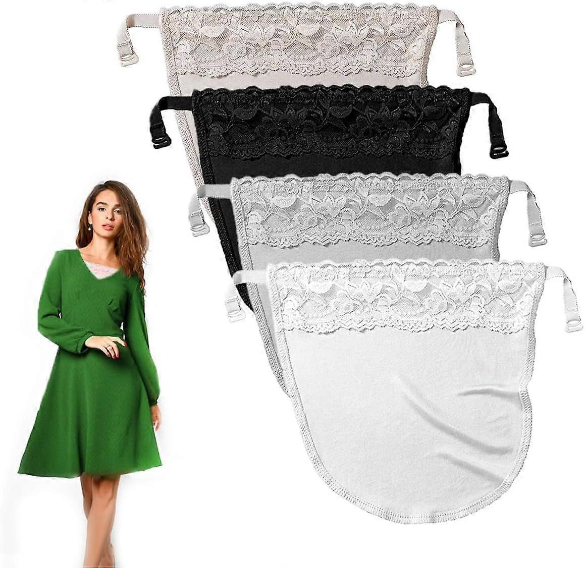 4Pcs Lady Lace Clip On Mock Camisole Bra Insert Overlay Vest Invisible Modesty Panels for Low Cut Tops Cleavage Cover Up for Women