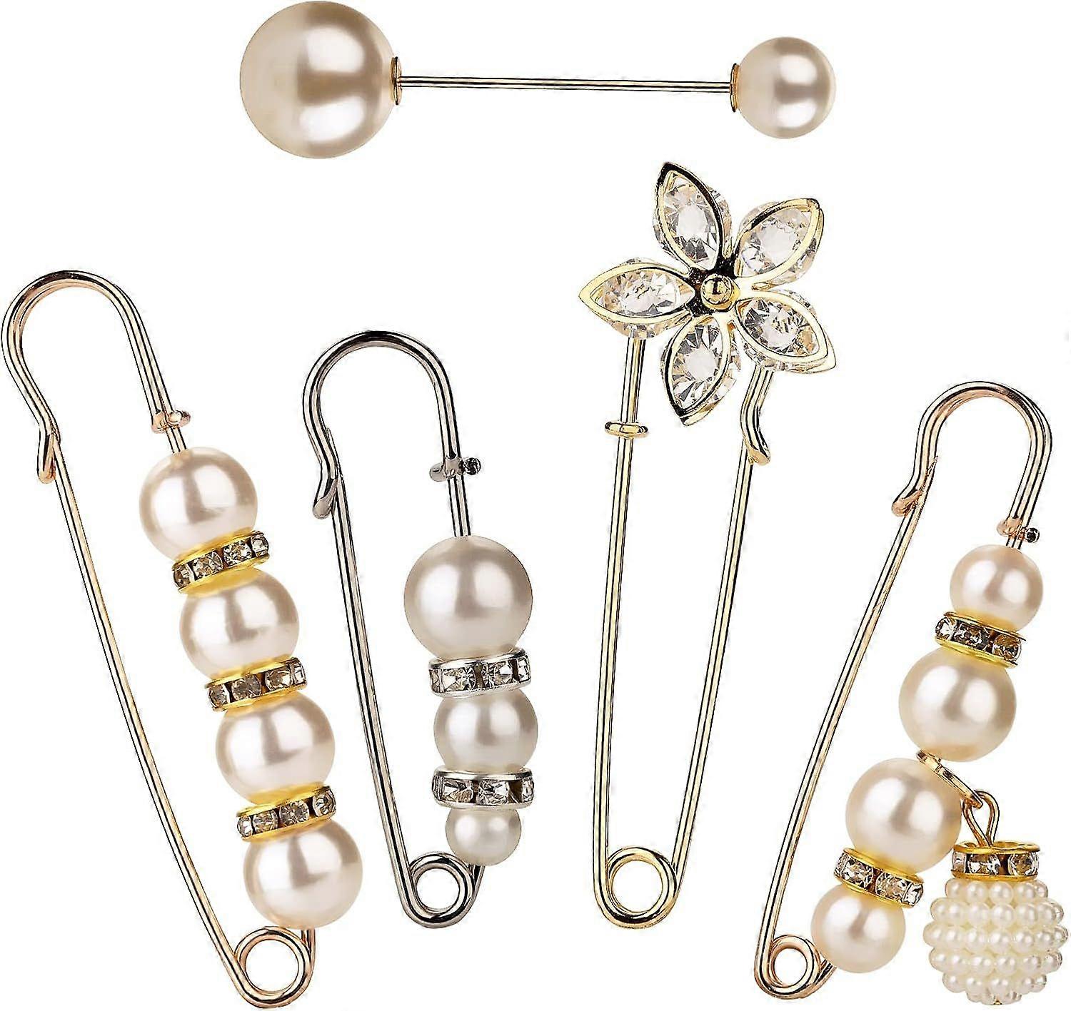 5 Pieces Brooch Pins Rhinestone Pins Artificial Pearl Heavy Duty Clips for Sweater Shawl