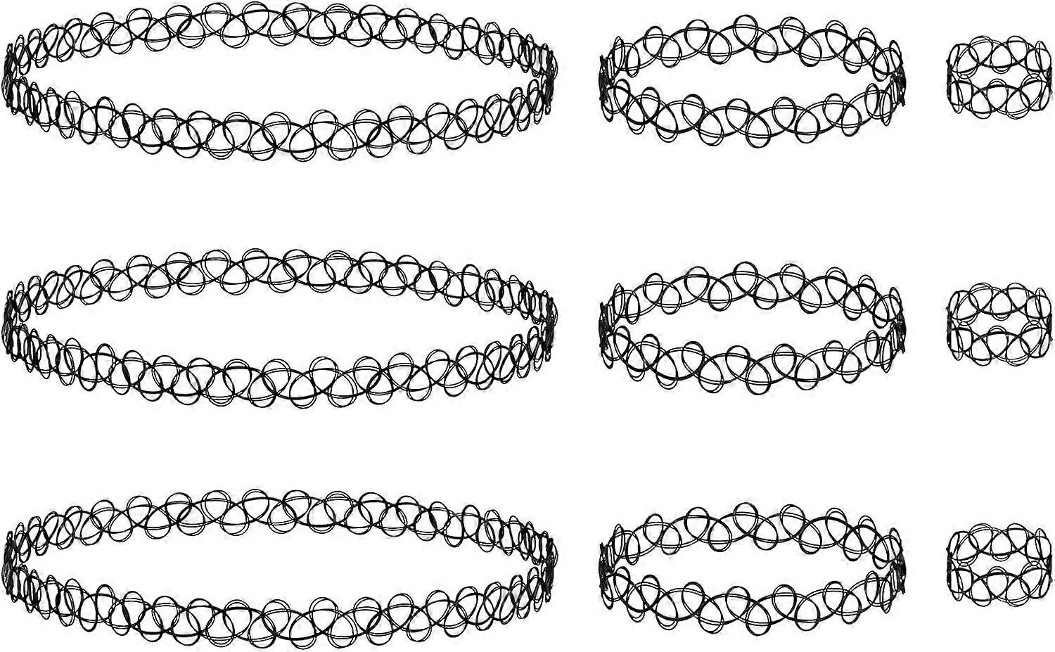 3 Sets Choker Necklace Kit - 90s Tattoo Choker - Elastic Stretch Jewelry - Choker Necklace with Bracelet and Ring - Gothic Vintage Accessories for Wom