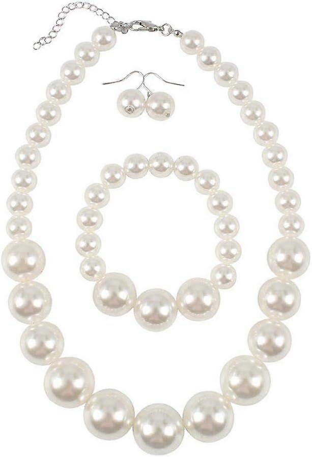 Large Big Simulated Pearl Statement Women s Faux Pearl Crystal Choker 19 Necklace Bracelet and Earrings Jewelry Set Round Beads Turquoise Necklace Bib for Brides Wedding Party White Product description Features: Material: Simulated Pearls Color: White Pearl Shape: Round Type: Necklace Bracelet and Earring Set Package Includes: 1* Faux Pearl Necklace 1* Faux Pearl Bracelet 1 Pair Faux Pearl Earrings Warm Tips: - Store your jewelry individually to keep them from scratching each other. - Avoid contact with perfume, body lotion, hairspray or any other chemical that may harm the shine of the stone. - To clean your jewelry, use a warm, soapy water soak and a soft brush, especially when cleaning jewelry that contains gemstones.