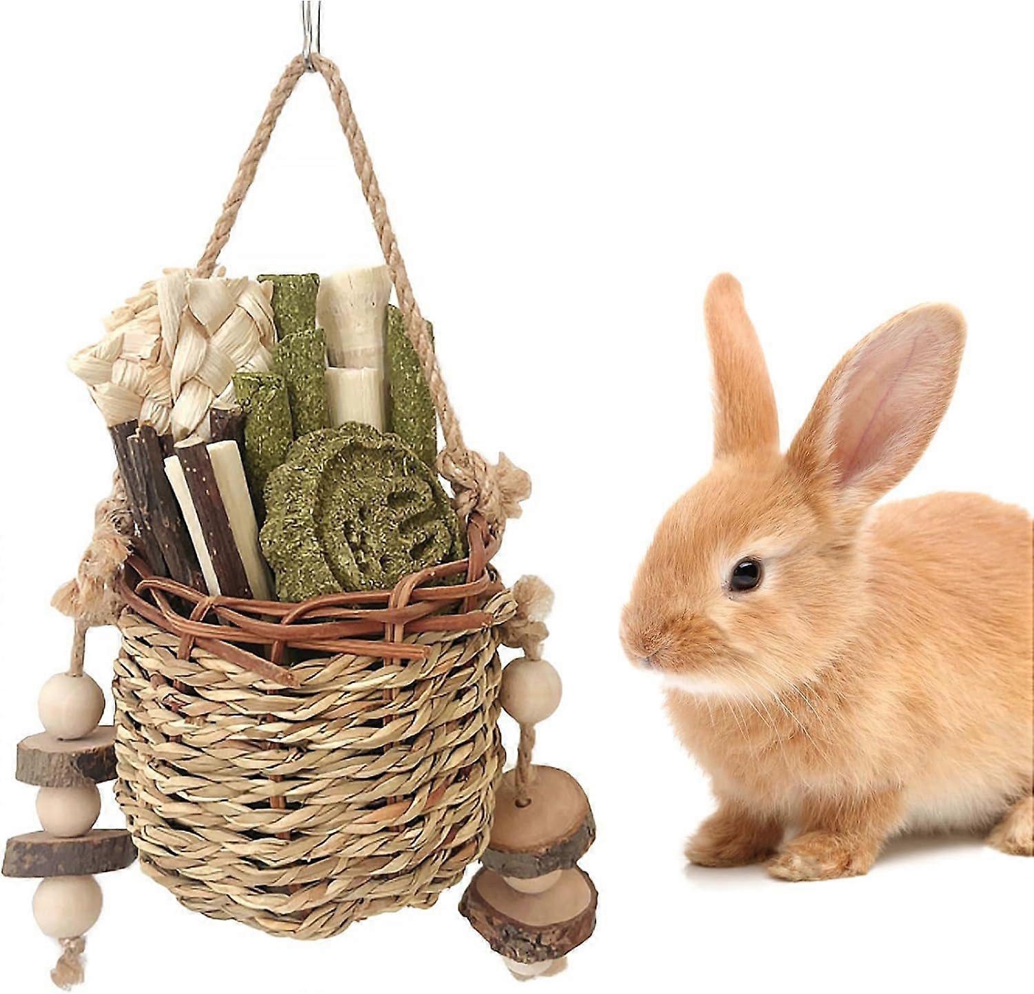 Bunny Chew Toys, Apple Sticks Hanging Basket Chews Water Plant Woven Chinchillas Chewing Treats for Rabbits Guinea Pigs Chinchillas Hamsters Rats Teet