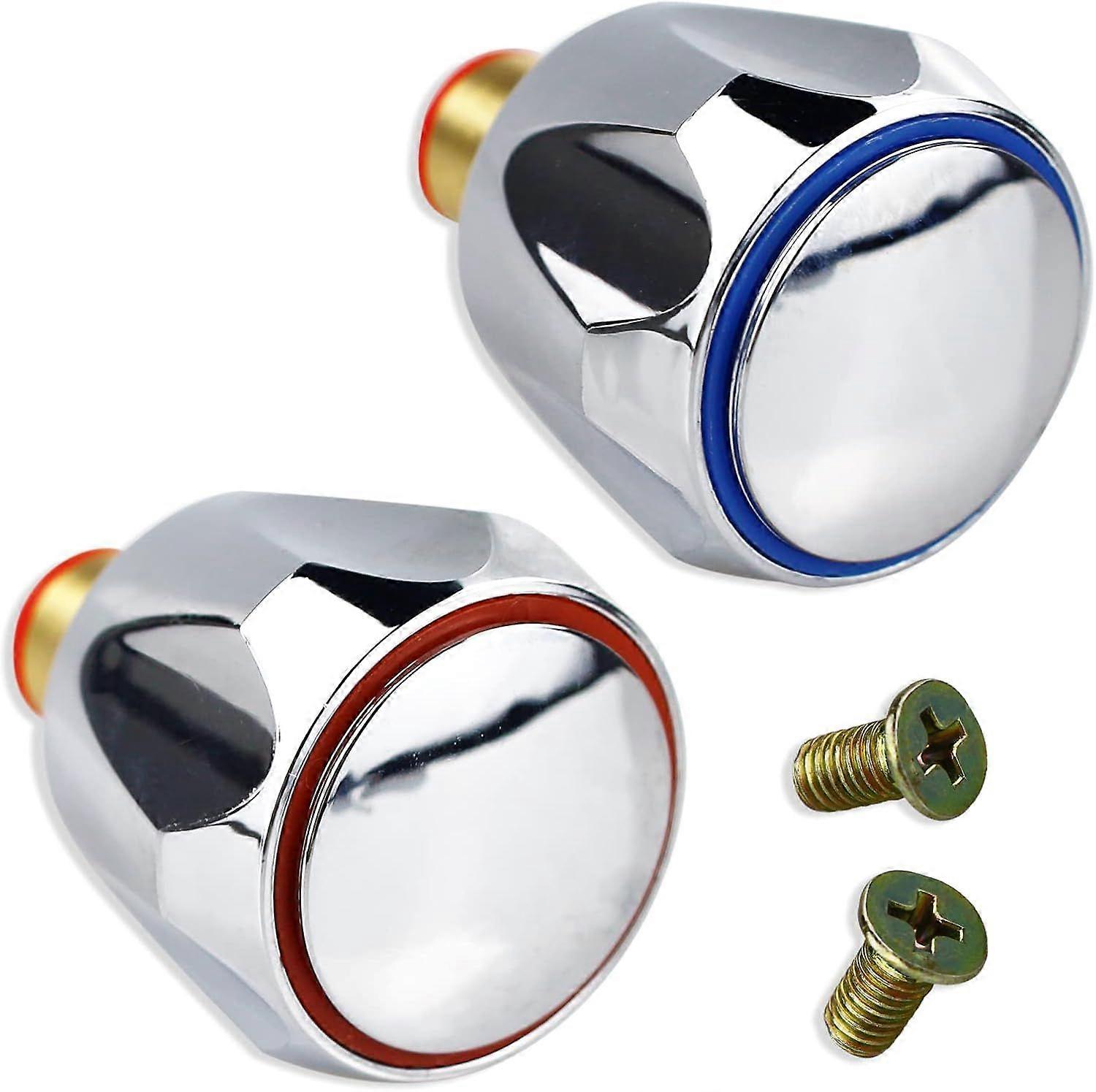 2 Sets Replacement Bathroom Kitchen Sink Tap Standard Hot & Cold Tap 1/2 Top Head Covers Chrome Plated Red and Blue Tap Top for Leaking Aging Taps