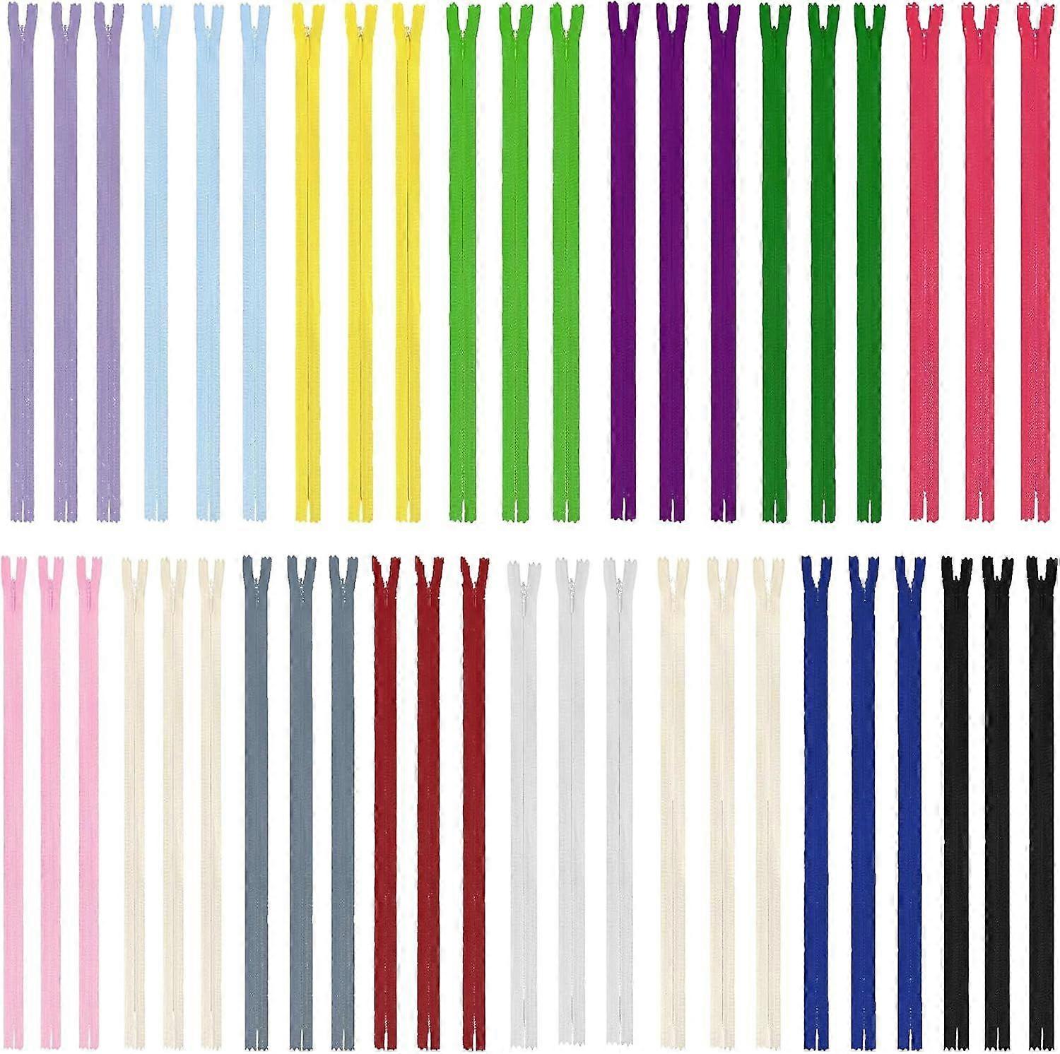 SZCXDKJ 45pcs 55cm/22 Inch Invisible Multicolor Nylon Coil Zippers for Sewing and Crafts 15 Colors Product description Package: Includes 45pcs zipper tape Size: 22 inch Color: 15 colors, red, yellow, blue, green, purple, white, black and gray, etc. Material: Nylon Feature: With zipper, open and off smooth, easy to install and remove and can be used for a long time. Function: helps to replace zips on clothing and furniture. Application: Suitable for the clothing manufacturing and furniture manufacturing industry.