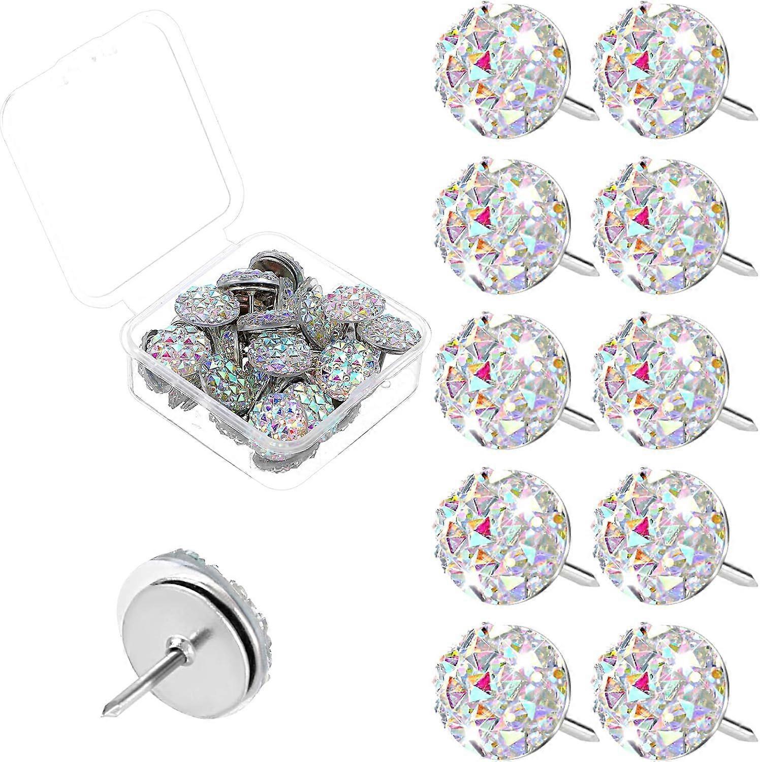 30Pcs Decorative Thumb Tacks Glitter Rhinestone Cute Push Pins for Bulletin Board Cork Board with Box Fun Push Pins White Thumbtacks for Wall Hanging