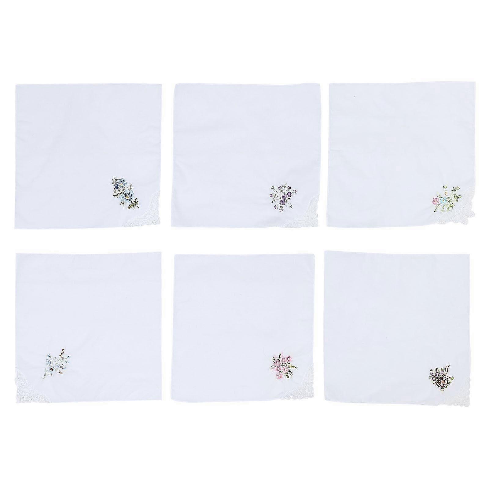 Women Floral Handkerchiefs 6pcs Cotton Embroidered