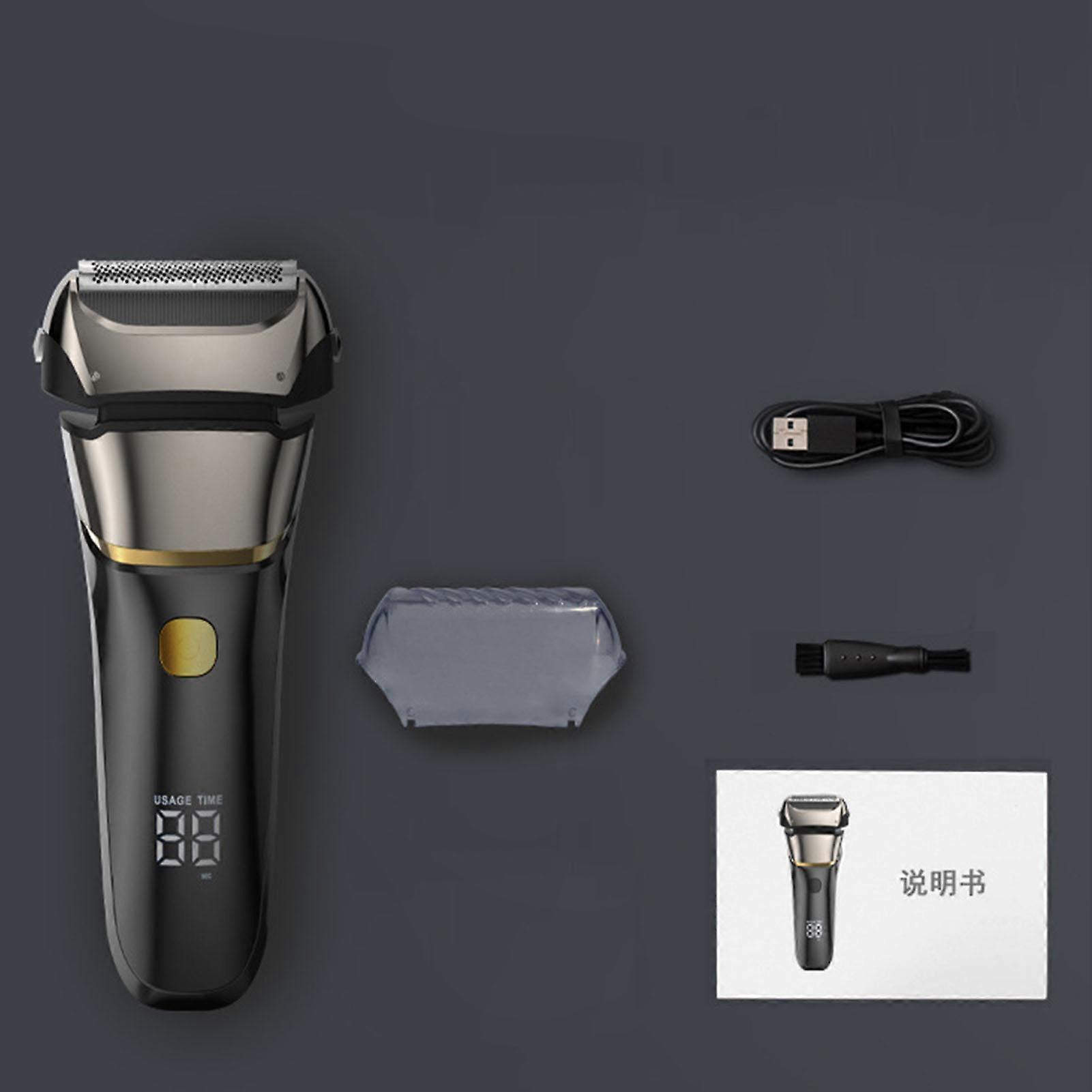 Introducing the Electric Razor for Men, a cutting-edge grooming tool designed to elevate your shaving experience. This cordless rechargeable shaver features a sleek design and advanced technology, making it the perfect addition to your daily routine. Accuracy & Efficiency: Our electric razor is equipped with three precision heads and a 5D float cutting system that effortlessly glides over your skin. This innovative design captures every hair, providing a silky and close shave while saving you time and effort in your grooming routine. Enjoy a smooth finish without the hassle of multiple passes. Versatile Grooming: Experience the ultimate convenience with our electric razor, designed for both wet and dry shaving. Whether you're in a rush and need a quick dry shave or prefer the luxury of a wet shave in the shower, this shaver adapts to your needs. Enjoy the flexibility to choose your preferred shaving method without compromising on quality. Long-Lasting Performance: This electric shaver boasts a powerful battery that provides up to 80 minutes of usage on a single charge, which takes just 1.5 hours. Whether you're at home or traveling, you can rely on our shaver for consistent performance without the need for frequent recharging. Stay groomed and confident wherever you go. Easy Maintenance: Keeping your electric shaver in top condition is simple and hassle-free. It features a detachable shaving head and a fully washable body, allowing you to easily rinse off any residue after use. Maintain optimal hygiene and ensure your shaver is always ready for your next grooming session. Perfect Gift Choice: With a user-friendly LED digital display and an ergonomic grip, this electric razor makes an excellent gift for any special occasion. Whether for a father, husband, boyfriend, or son, it’s a thoughtful present that combines practicality with style. Elevate their grooming routine and show you care with this exceptional gift. Upgrade your grooming game with the Electric Razor for Men. Experience the perfect blend of technology, convenience, and style, and enjoy a superior shaving experience every time. Order yours today and redefine your daily routine!