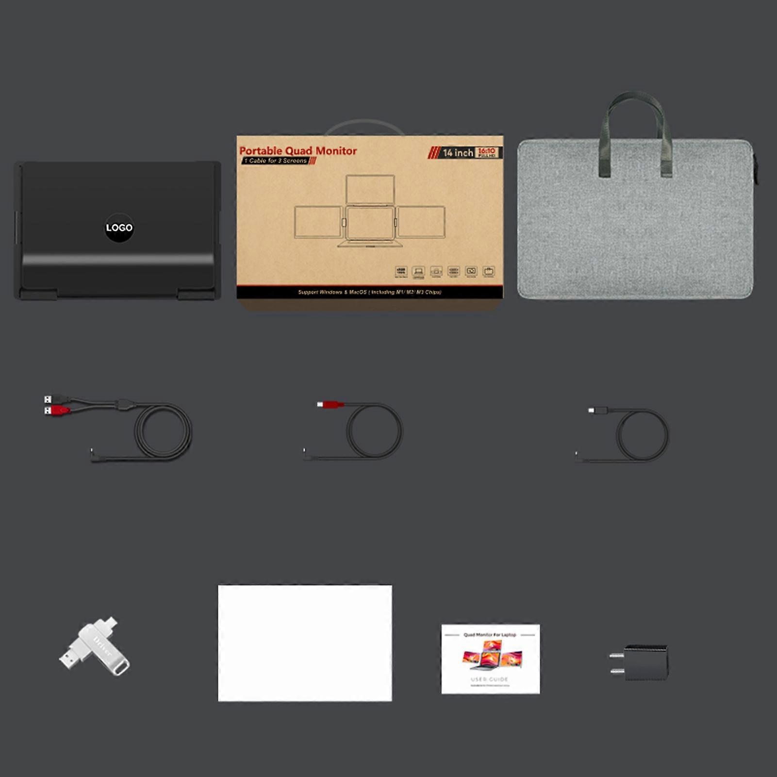 14" Laptop Screen Extender 1200P FHD Quad Monitor Portable 1 Cable for 12-17.3" Laptops