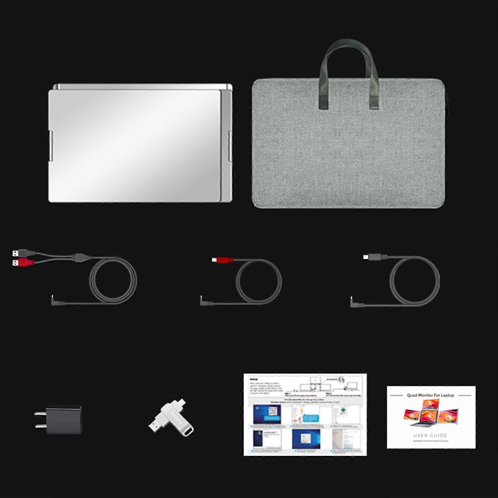 16" Laptop Screen Extender 1200P FHD Quad Monitor for 12-18.5" Laptops, 1 Cable Setup