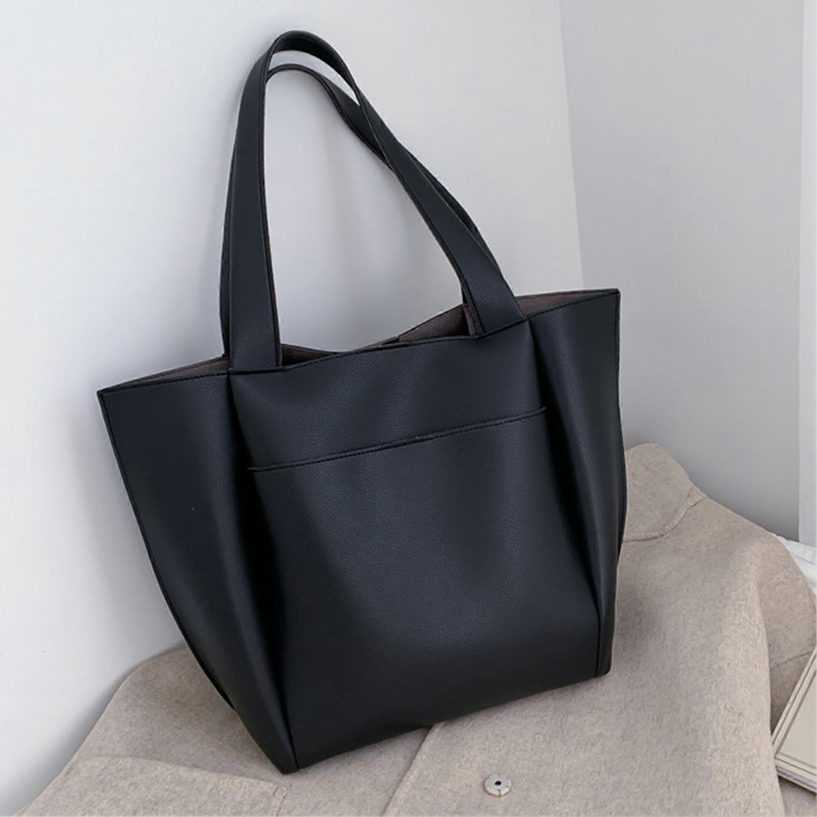 Large Capacity Women PU Leather Shoulder Bag Black 43x31x13cm