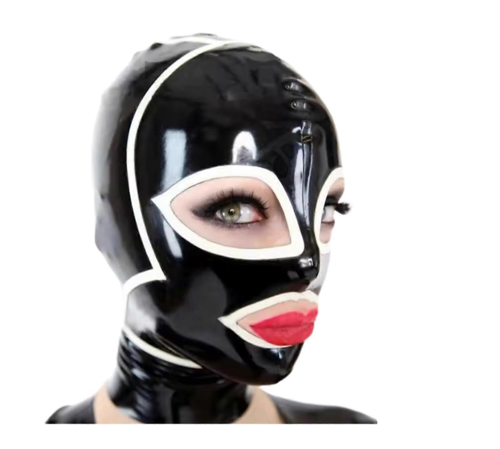 Latex Hood Back Zipper Unisex Cosplay Size S Black Handmade