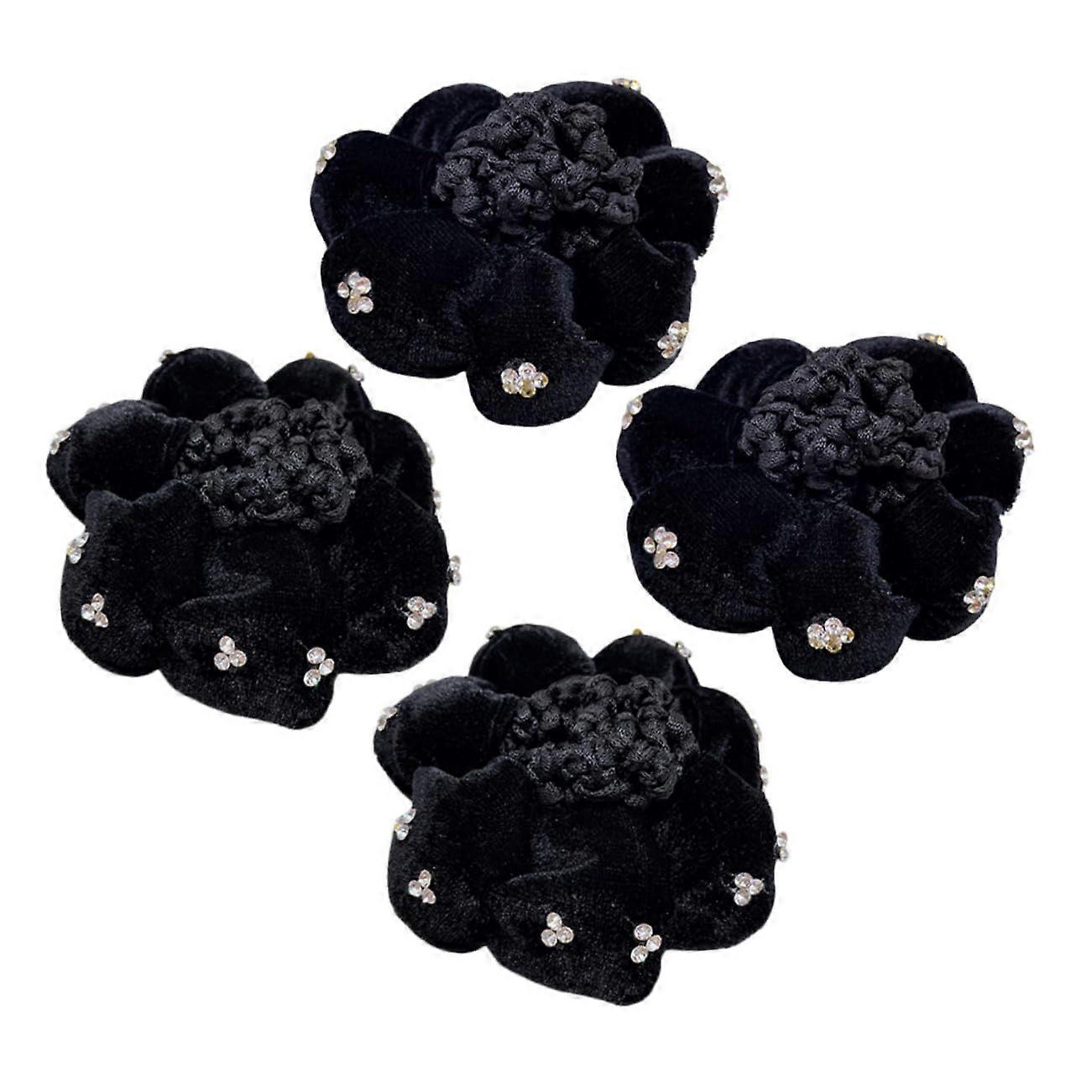 Hair Bun Net Black Velvet With Rhinestones 4Pack For Women Nurse Hairnets For Dance Work Formal Occasions