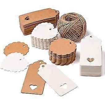 Gift Tags, 200pcs Kraft Paper Tags Vintage Wedding Favor Brown White Gift Tags RecScalloped Heart Hang Tags Labels A