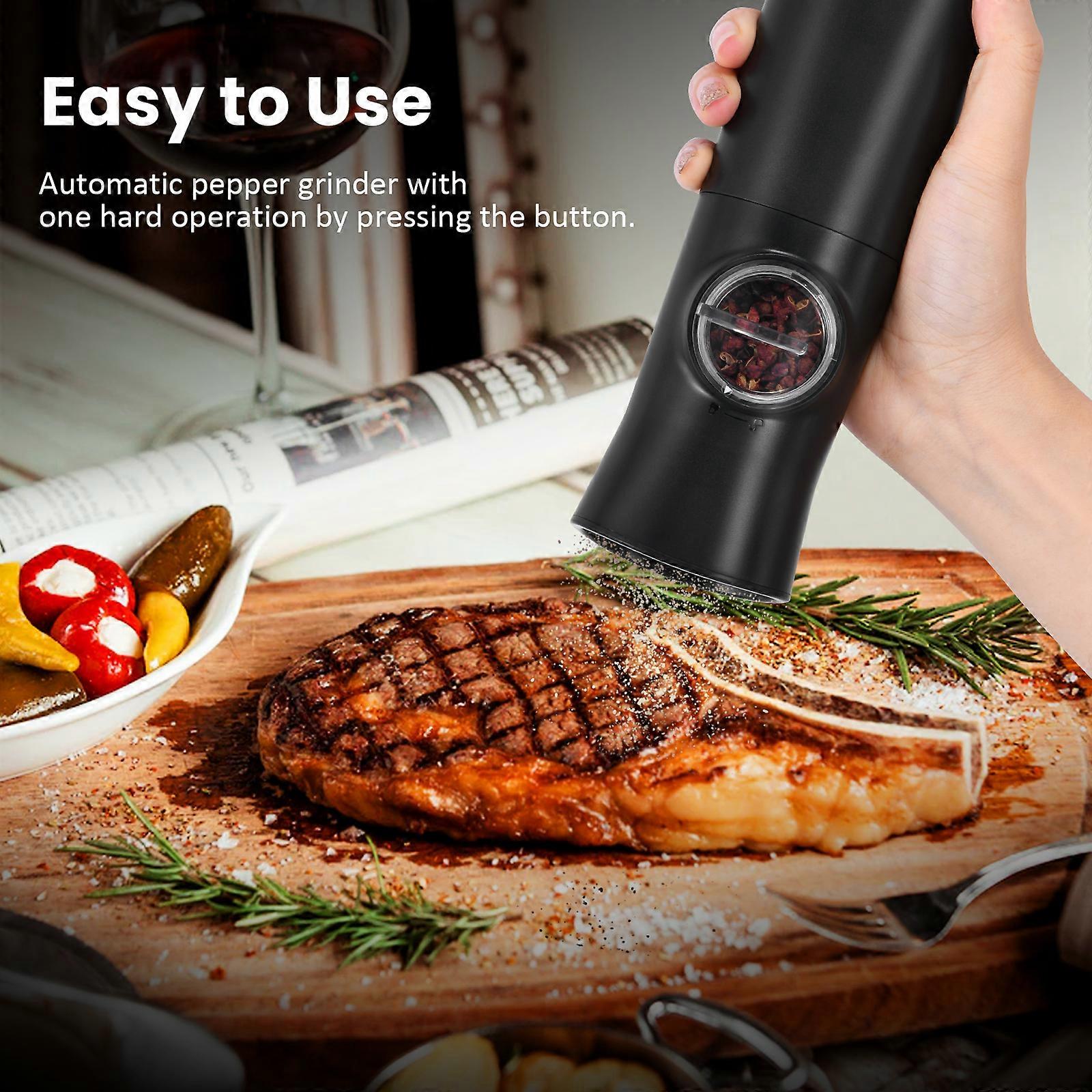 Electric Salt & Pepper Grinder Set, Auto Rechargeable, Black, 2-Pack