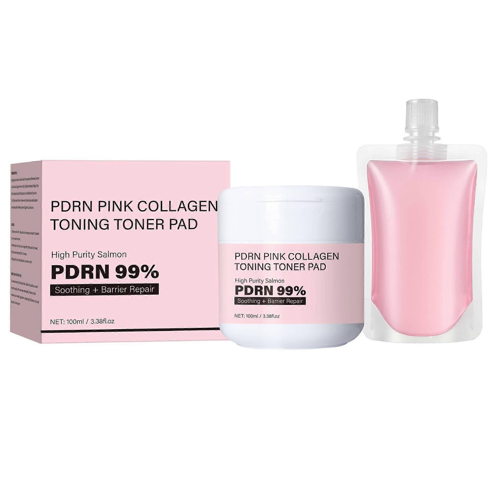 Salmon PDRN Pink Collagen Toning Toner Pads | PDRN Pink Glow Toner for Skin Boosting and Soothing, Niacinamide, Retinol | Radiance & Uneven Skin Tone