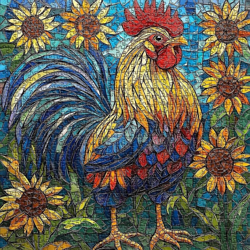 Stained Glass Rooster Puzzles for Adults,Thanksgiving Chicken Puzzle Jigsaw Puzzles Wood Jigsaw Educational Toys PPTT-079