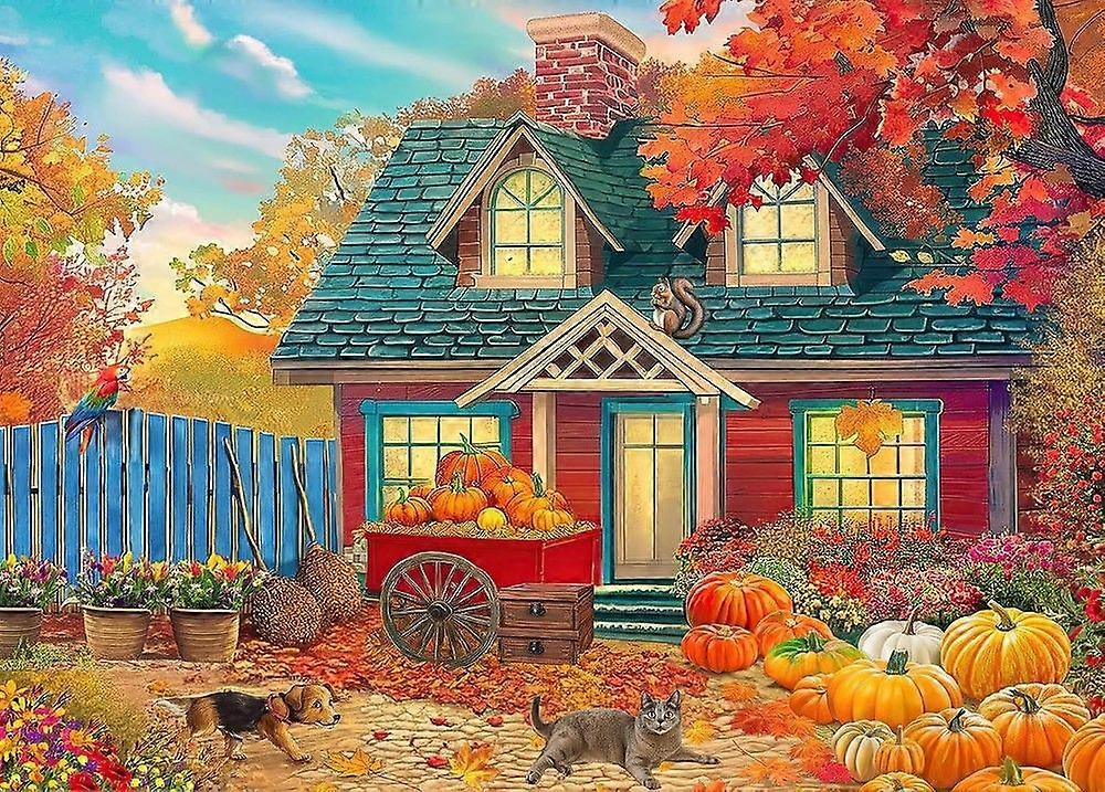 Autumn Pumpkin Harvest Jigsaw Cozy Fall House Scene Jigsaw Puzzles Wood Jigsaw Educational Toys PPTT-025