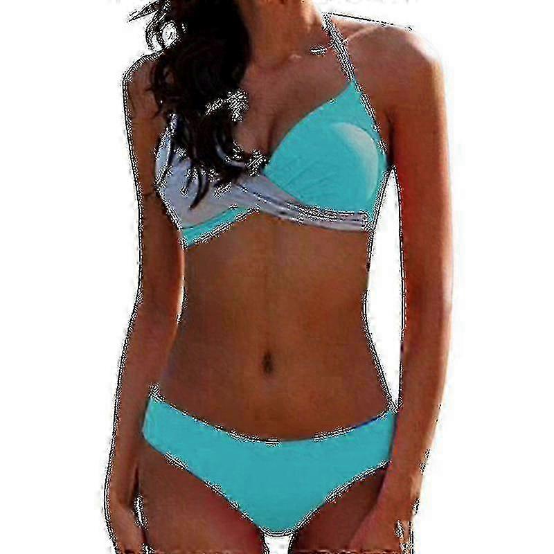 Women Color Block Bikini Set Padded Push Up Swimwear Bathing Suit Halter Neck Swimsuit miao7