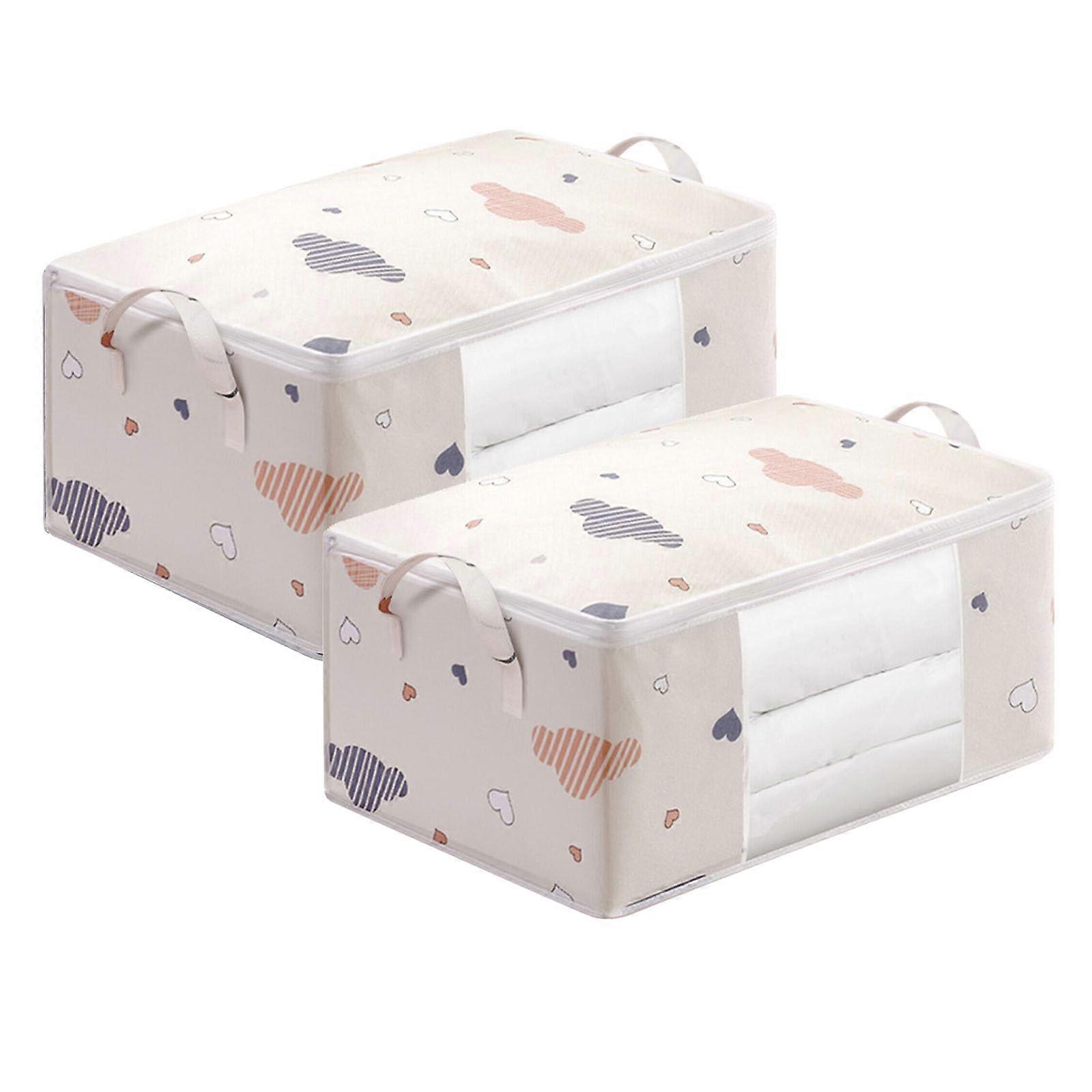 ZENGO Clothes Storage Bag,Underbed Storage Bag, Waterproof Moisture Proof Bedding Organizer with Clear Window & Handle (Cream (Pack of 2), 55*35*25cm)