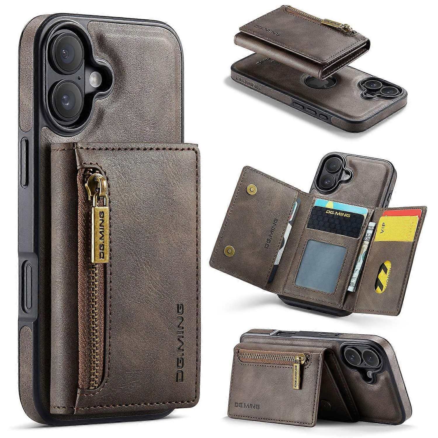 DG.MING M5 Series For iPhone 17 Case Detachable Magnetic Leather Phone Cover with Card Slots - Coffe