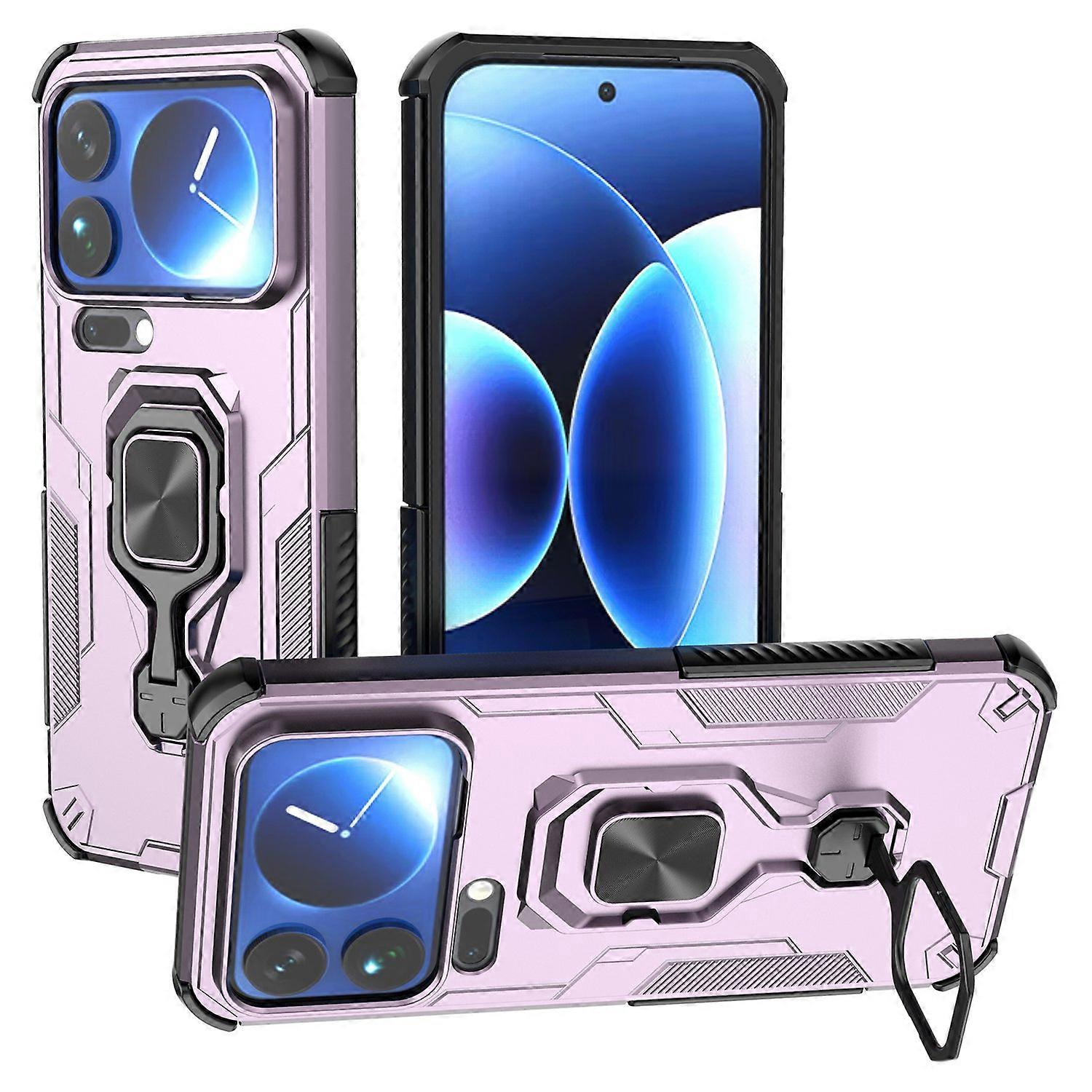 For Xiaomi 17 Pro Max Case Rotatable Ring Kickstand PC + TPU Shockproof Phone Cover - Purple