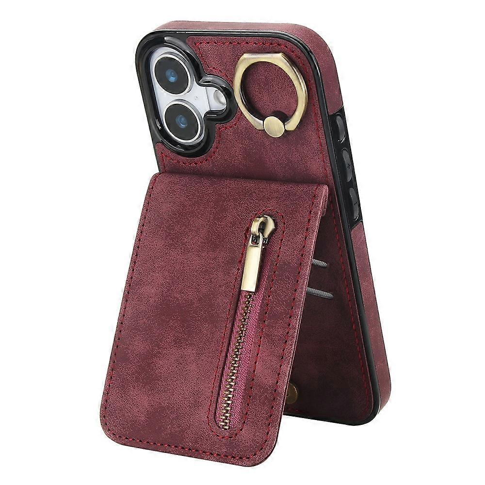 For iPhone 17 Case Zipper RFID Blocking Retro Leather + TPU Phone Cover with Kickstand - Wine Red