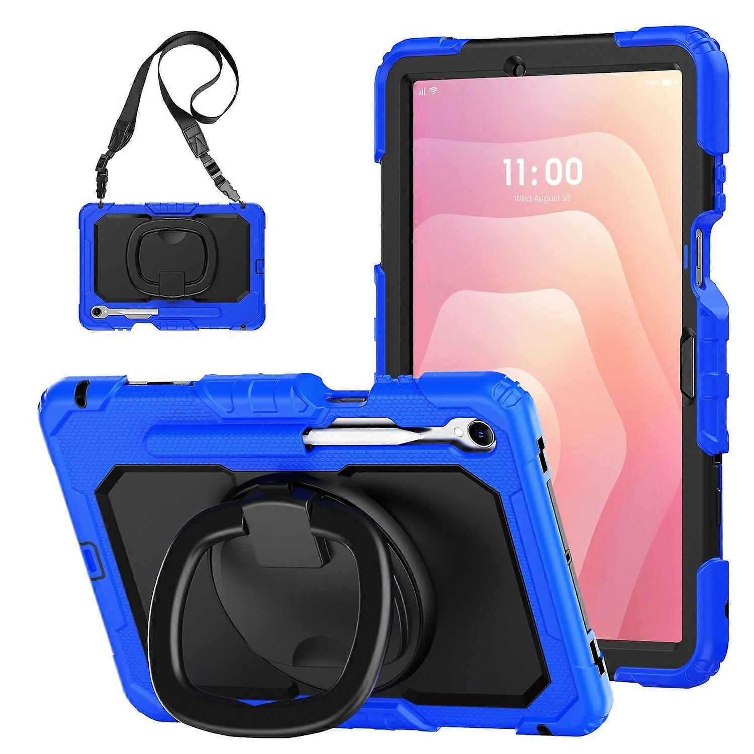 For Samsung Galaxy Tab S11 Kickstand Case PC + Silicone Tablet Cover with Shoulder Strap - Dark Blue