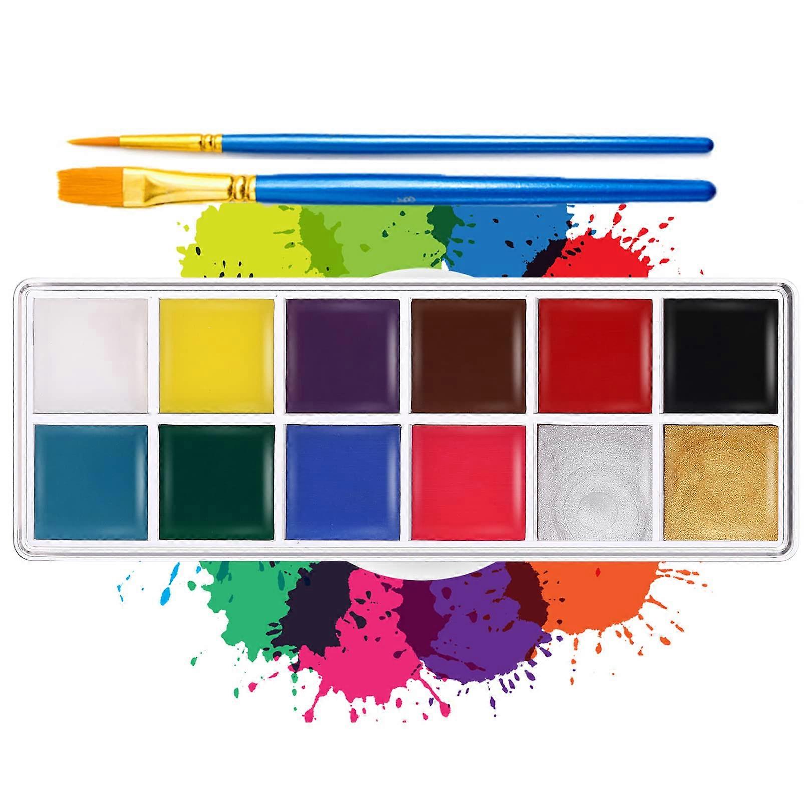 ZENGO Face Painting kit with Brushes, Professional Face Body Paint 12 Colors Makeup Palette Body Paint Oil Based Non-Toxic Makeup Pallet Halloween