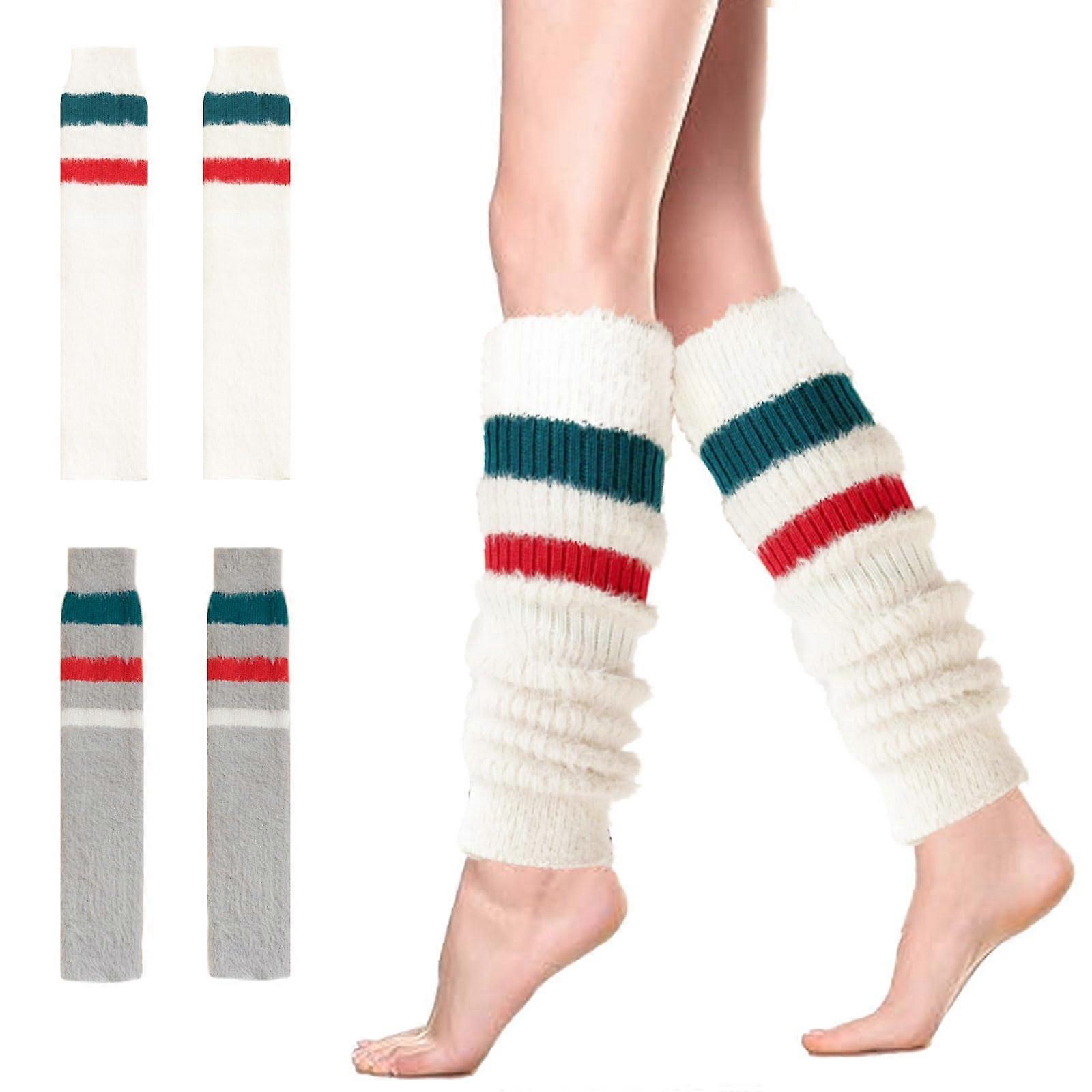 ZENGO 2 Pairs Winter Knitted Leg Warmers, Fluffy Legwarmers Warm Knitted Boot Cuffs Socks Soft Thermal Thigh High Socks Comfy Knee High Socks