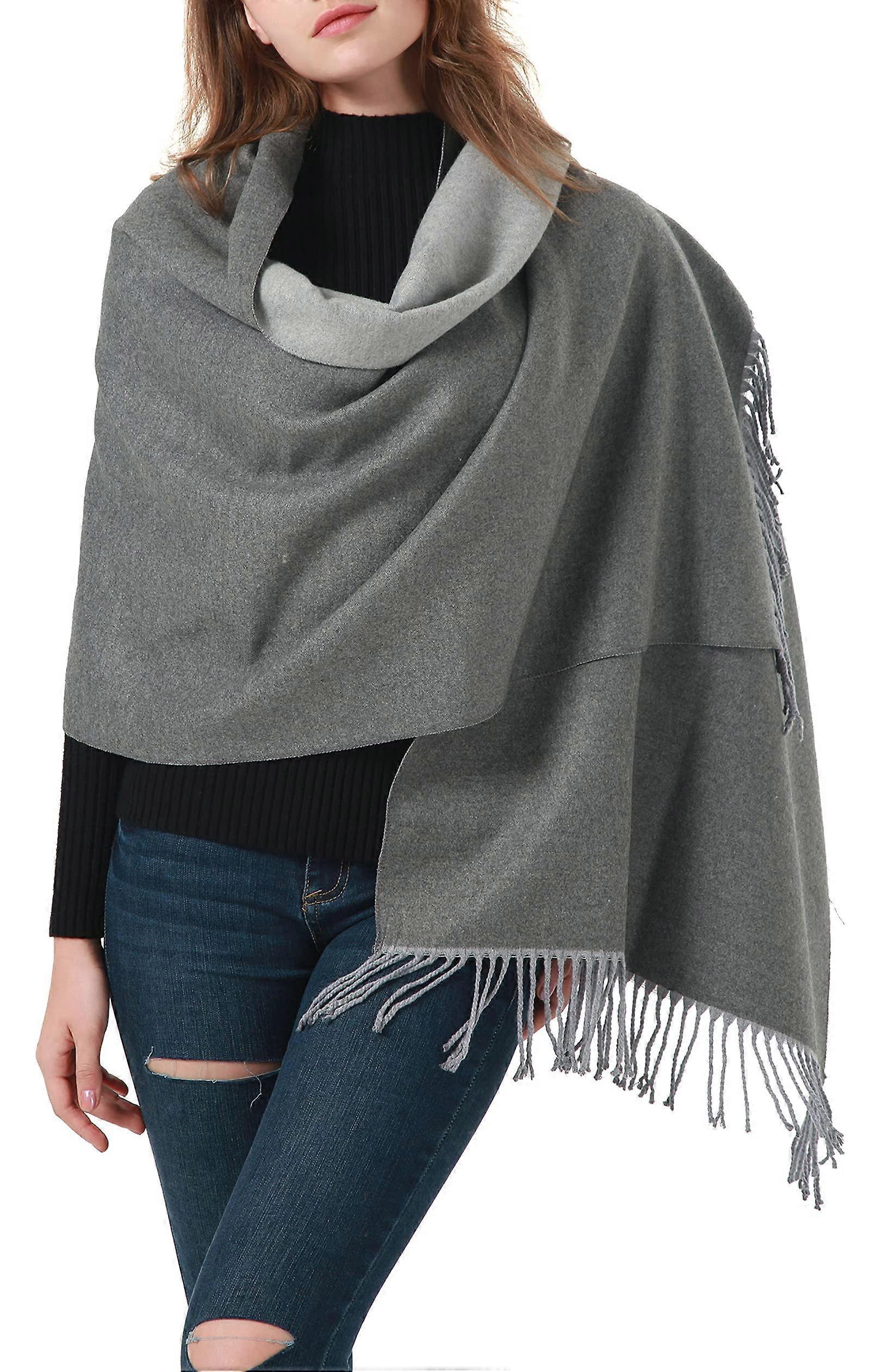 ZENGO Women's Scarf Cashmere Feel Shawl Warm Winter Pashmina Wedding Party Wrap Two-Color Large Blanket Scarves