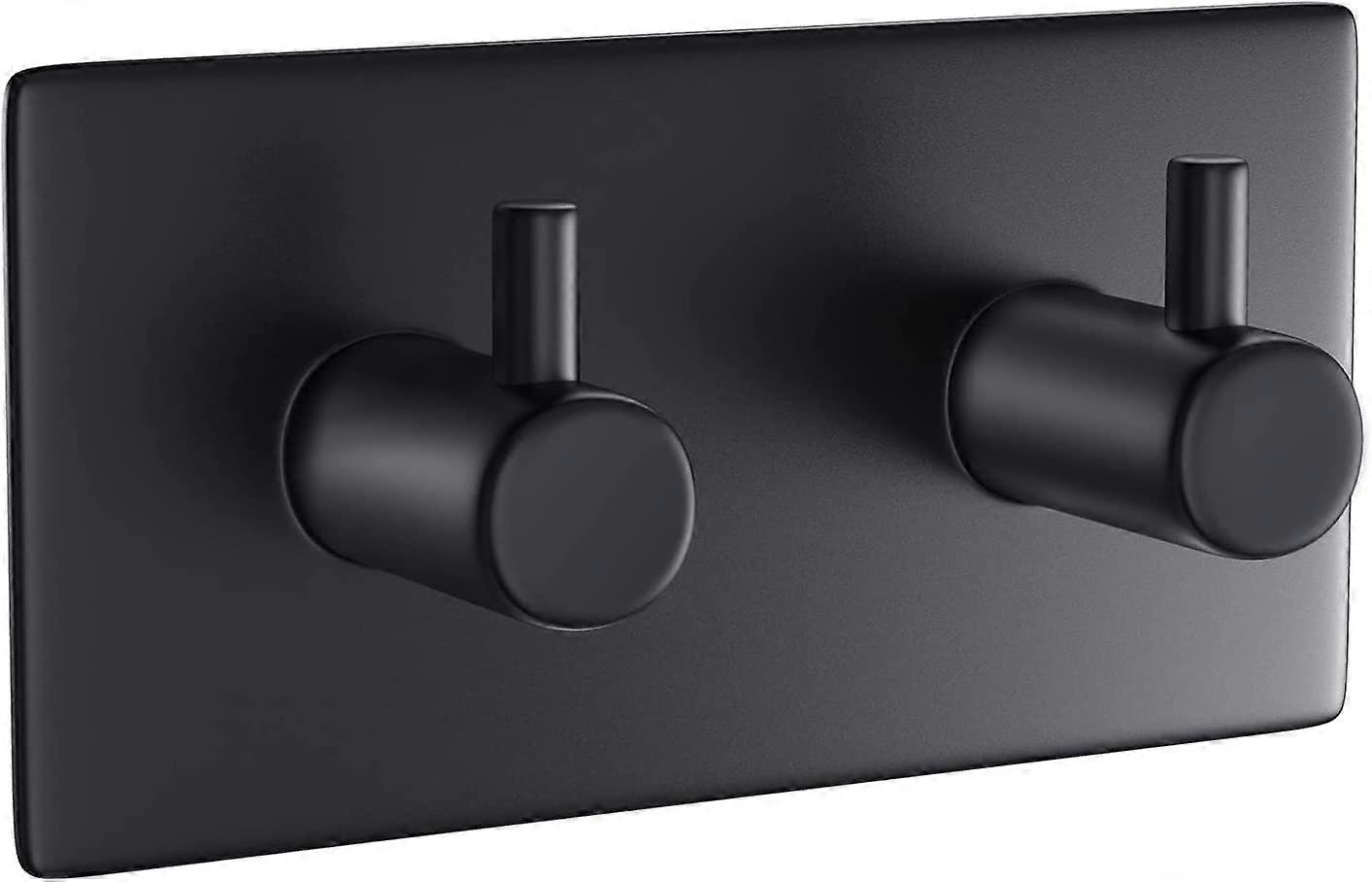 ZENGO Double Matt Black Towel Holder,Self Adhesive,Sticky Hooks,Wall,Stainless Steel,Stick on Hooks,Door Hooks,Wall Hooks for Hanging,Bathroom Hooks