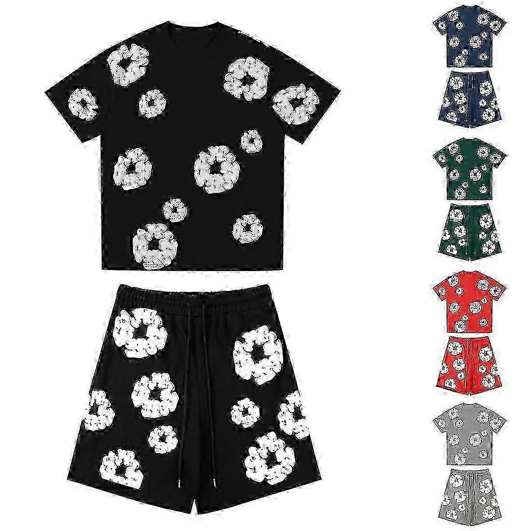 suitable for women and men casual loose fit printed t-shirt and shorts set street fashion short sleeves