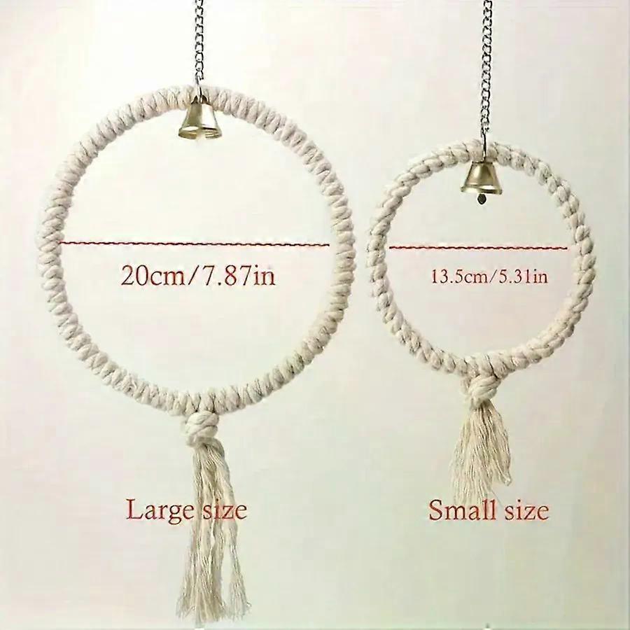 Natural Hemp Rope Bird Toy Ring with Bell Large 787in Small 531in Parrot Cage Accessory for Climbing Chewing and Decorating