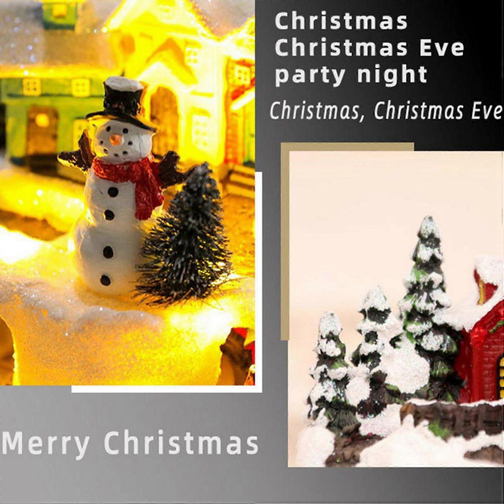 2X Village Houses Sets Rotating Train Display Figurines LED Light Up Musical Christmas Holiday Decoration Snowman