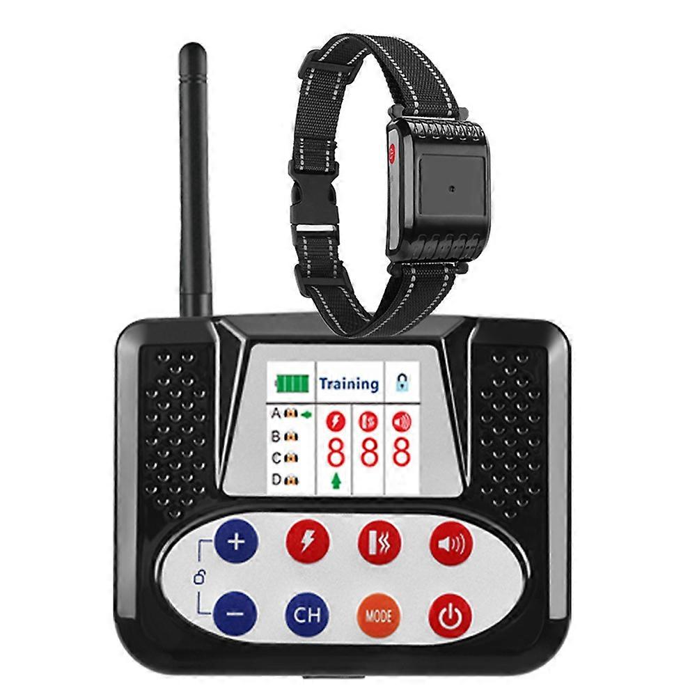 Two-in-one electronic wireless fence dog trainer, novel appearance, large color screen display, more intuitive display, simpler operation, The product is sprayed with UV oil, more comfortable to touch, and more worth mentioning is that it combines dog trainer and wireless electronic fence in one, easy and convenient mode switching, so that pets can get better training within a limited range. Turn on the dog training mode, happy and scientific dog training: choose the dog training mode sound + vibration + according to the temperament of your pet Safe current only warns but does not cause : 0-9 levels are adjustable, suitable for large and small dogs, and the current intensity is adjusted according to the weight. It is recommended to adjust from small to large to find the intensity suitable for the dog Long-lasting battery life, lasting experience: The transmitter has a built-in 2500mAH lithium battery, and the receiver has a built-in 500mAH lithium battery, which effectively guarantees long-lasting battery life Color: Black Material: ABS Package Contents: 1 x remote control 1 x receiver 1 x charging cable 1 x English instruction manual 1 set x accessories Only the above package content, other products are not included. Note: Light reflection and different displays may cause the color of the item in the picture a little different from the real thing. The measurement allowed error is +/- 1-3cm.