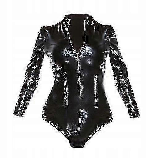 Women's Sexy Patent Leather Bodysuit Long Sleeve 2025