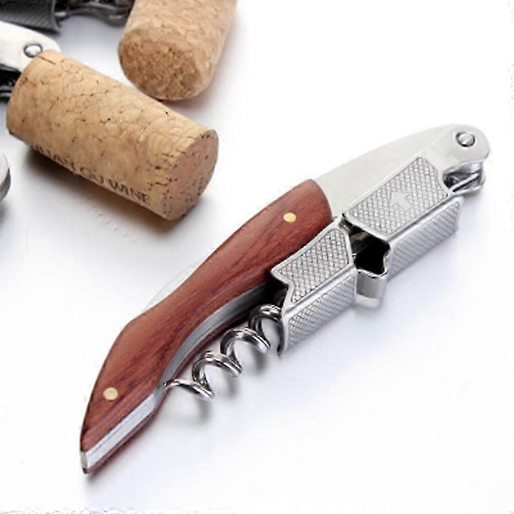 Product description Color: style 1, style 2 Folding size: 12.5 x 2.8 cm Material: stainless steel and solid wood handle Packing area: 1 x wine corkscrew 1. PREMIUM QUALITY - The robust and rustproof stainless steel harmonises ideally with the individual pattern of the bloodwood. Every waiter's knife is unique! No knife looks exactly like the other. Thanks to the natural product of wood, our waiter's knife gains a tremendous optical and haptic quality and the sommelier knife becomes a high-quality everyday tool. 2. ALL-IN-ONE DESIGN - Use the 2-stage corkscrew for effortless uncorking. A serrated capsule cutter to remove the film and a bottle opener complete this waiter's knife. 3. GET THE CONDITION OF YOUR CORKS - With our Bottle Opener you stay relaxed - even while lifting the longest and most sensitive wine corks - without damaging them. 4. MINIMUM EFFORT - SPECIAL DESIGN made of robust stainless steel. Guarantees problem-free removal of corks made of synthetic or natural material, with just a few turns and without damaging or crumbling the cork. Note: Due to the light and screen setting difference, the item's color may be slightly different from the pictures. Please allow slight dimension difference due to different manual measurement.