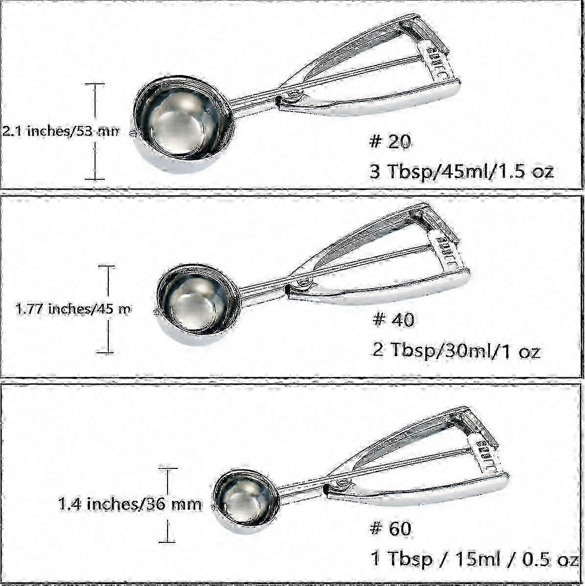 Cookie Scoop Set: Small 1 Tbsp, Medium 2 Tbsp, Large 3 Tbsp, 18/8 Stainless Steel Ice Cream & Dough Scoop