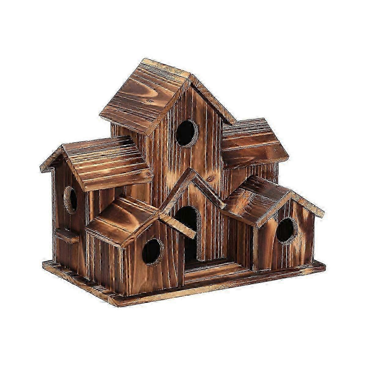 Hanging Wooden Bird House, 6 Hole Outdoor Courtyard Backyard Decorations