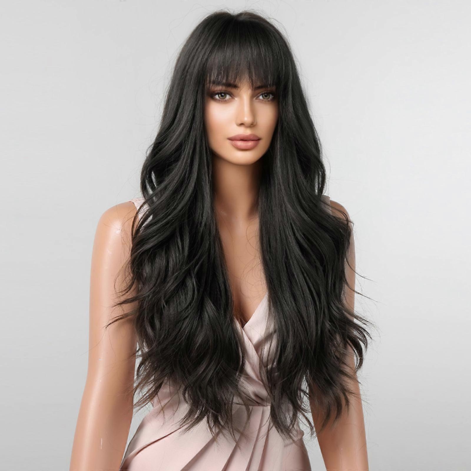 Women's Elegant Light Brown Body Wave Wig with Bangs - Versatile & Comfortable Heat Resistant Fiber for Party
