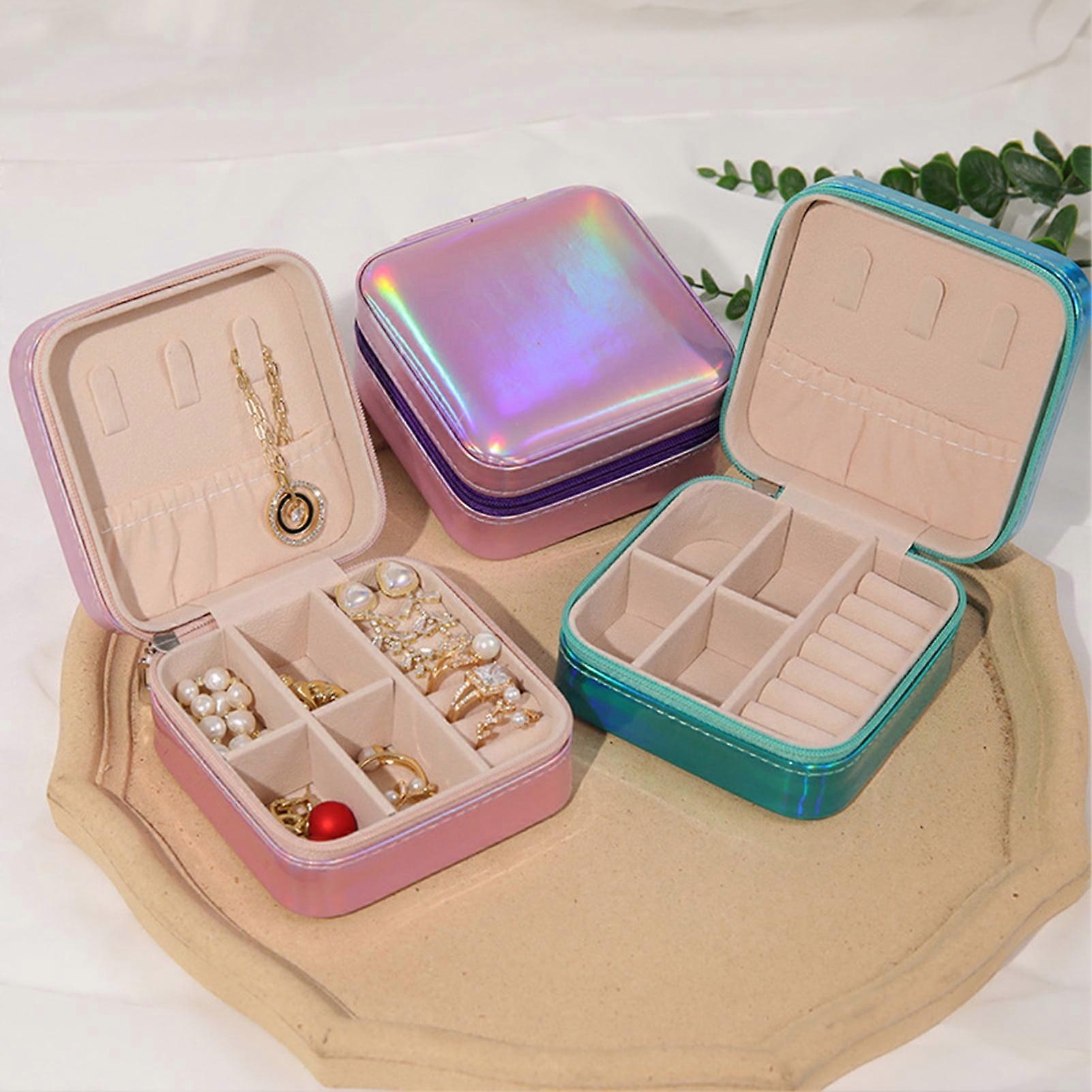 SUSUchens Mini Jewelry Box Organizer, Waterproof & Portable Travel Case, Faux Leather, Double Layer with Mirror, for Rings, Earrings, Necklaces,