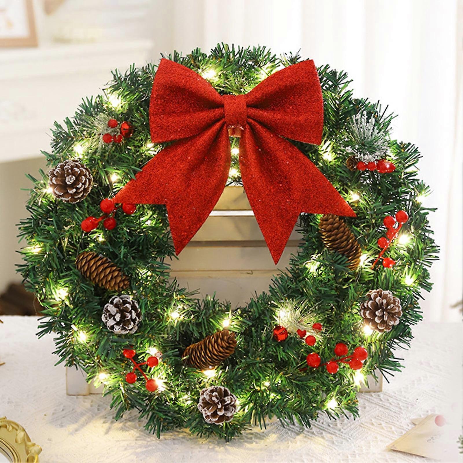 SUSUchens Christmas Wreath 30cm, Green Faux Spruce with Red Bow, Pine Cones & Berries, Indoor/Outdoor Use, Reusable Holiday Garland