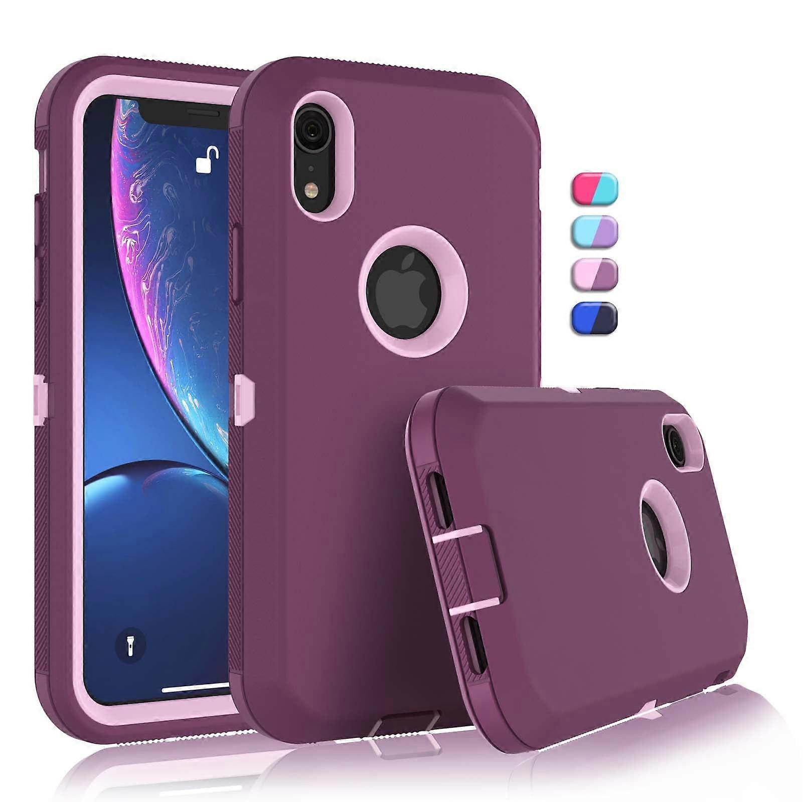 Compatible with iPhone XR Cases, 6.1" Shockproof Rugged 3-in-1 Armor Case with Hard Plastic & Rubber Bumper for Full-Body Protection