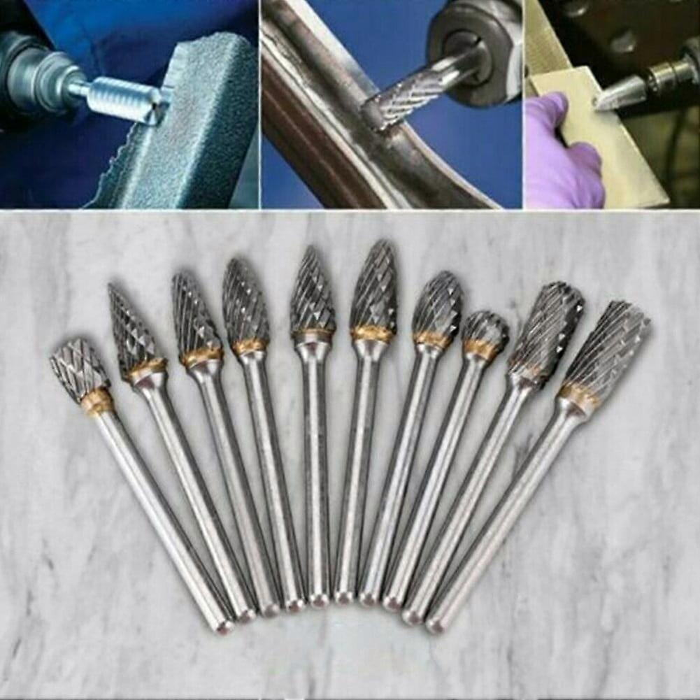 10*/set 1/4 Double-Cut Tungsten Steel Carbide Rotary Burr Die Grinder Shank-Bit