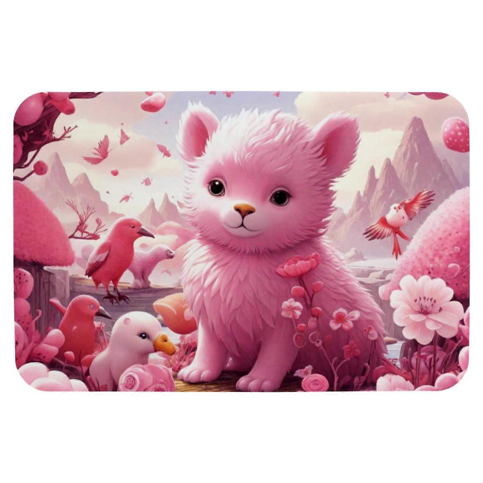 20x31in Pink Animals Memory Foam Bath Mat, Machine Washable, Non-Slip, Quick Dry, Soft & Absorbent Rug for Bathroom Floor