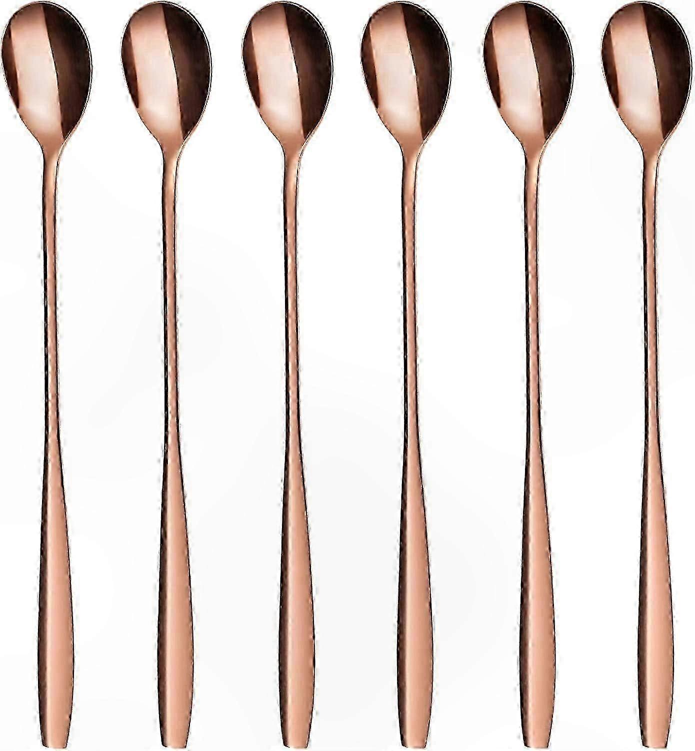 Long Stainless Steel Spoons, Set of 6, 22 cm, Gold Polished, Ideal for Desserts and Beverages