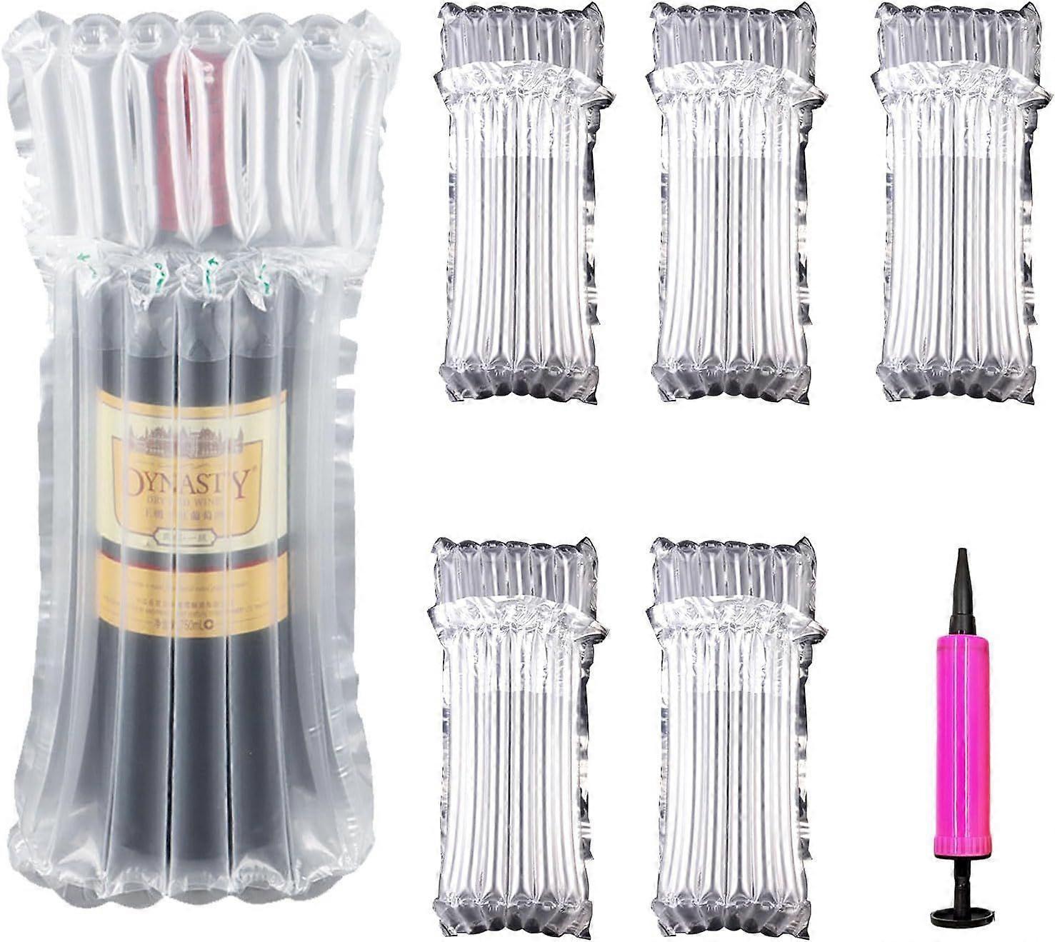 AYNKH Wine Bottle Protector 6 Pack Reusable Wine Bottle Bubble Cushion with free pump Inflatable Air Column Cushion Bubble Wrap Bag for Safe Travel Ai