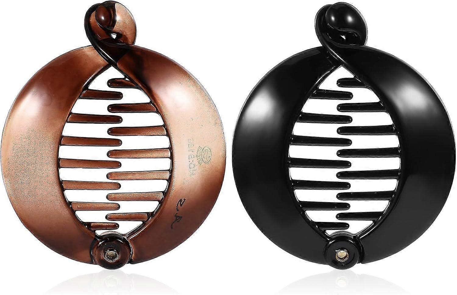 2 Pcs Sbanana Small Round Plastic Fishtail Hair Clip Grips - Resin Combs Ponytail Holder Fish Clips For Women & Girls - Long Straight Curly Thick Hair