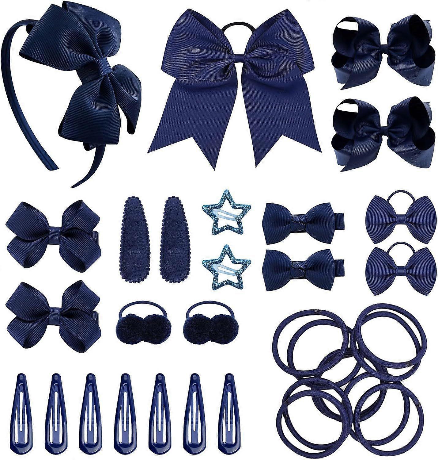 SKHAOVS 33 Pieces Blue Girls School Hair Accessories Kit Girls Hair Accessories Set Ribbon Style Bow Bobbles Headband Large Cheer Bow Hair Accessories
