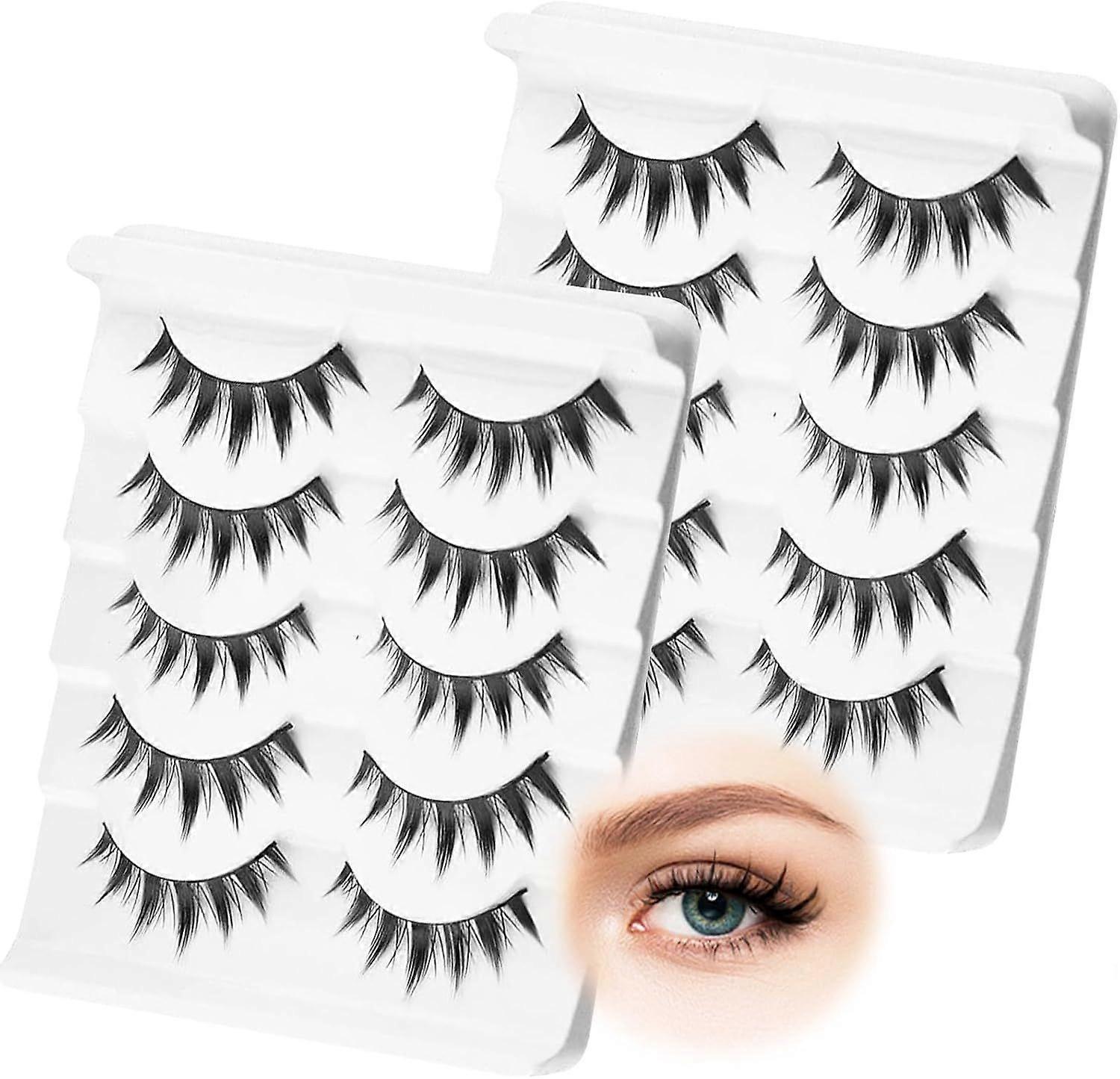 10 Pairs Manga Lashes False Eyelashes Strip Lashes Anime Lashes Natural Cosplay Makeup Fake Eyelashes Reusable Japanese Style Makeup Wispy Long Thick