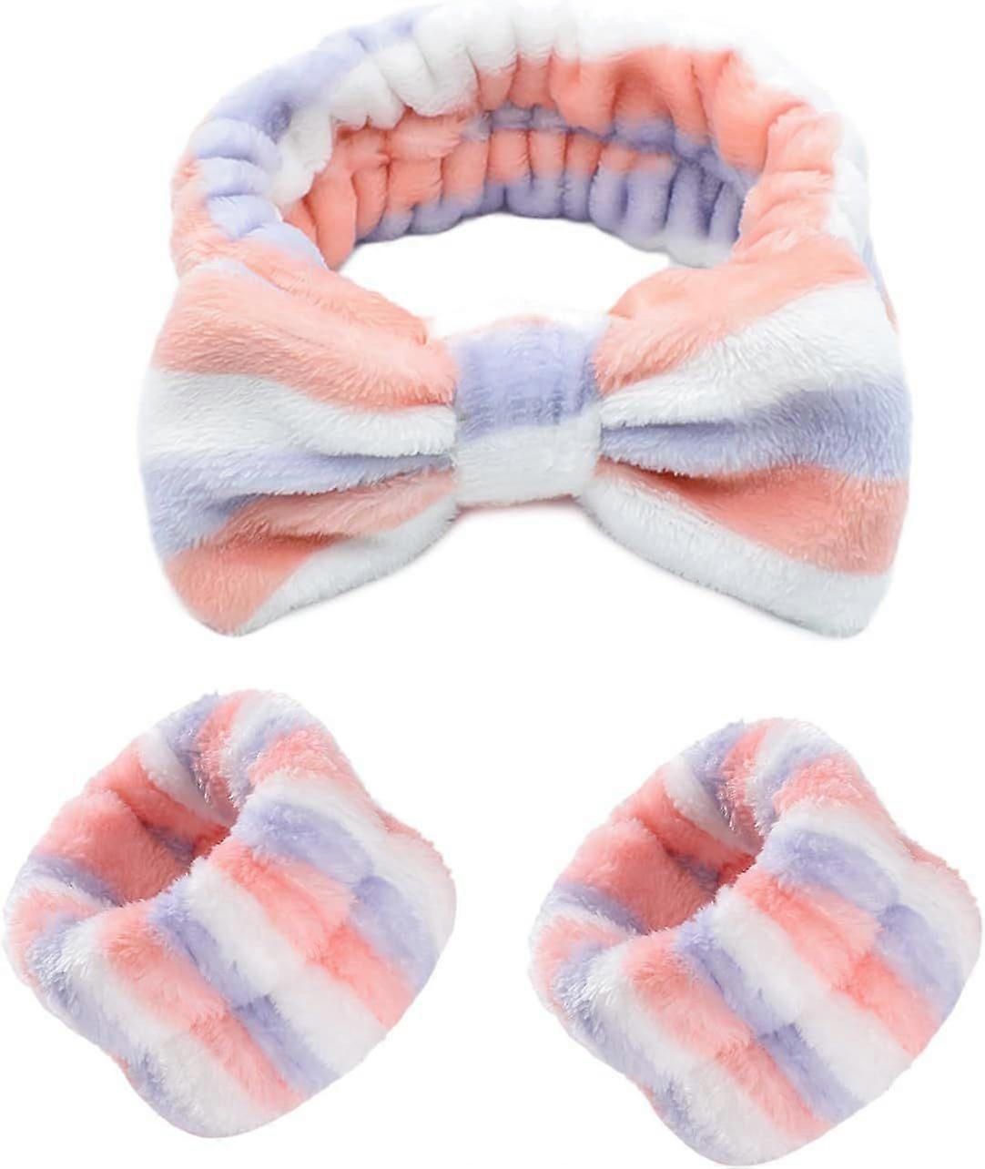 3 PCS Spa Headband Wrist Washband Wash Set make up Headband Soft Elastic Hair Band Coral velvet Headband Portable Waterproof Wrist Band Face Wash Wrist Band Butterfly Tie Hair Band Product description Product Details: Product name: waterproof wrist strap Size: 9 * 5.5cm Materials: flannel Color: tricolor stripe Product name: make up headband Material: flannel Size: about 19cm in diameter Bowknot size: 16 * 8.5cm Color: tricolor stripe characteristic: 1. Moderate thickness, good elasticity, suitable for different head circumference, good fit, and won't make your head or wrist tight 2. It is made of flannel material, reliable and reusable, safe and soft, comfortable and fluffy, with good water absorption, and is not easy to crack or fade 3. It can avoid wetting your arms and clothes when washing your face and hands, and will not cause tension or pain in your ears, head and wrists, bringing you a good wearing experience